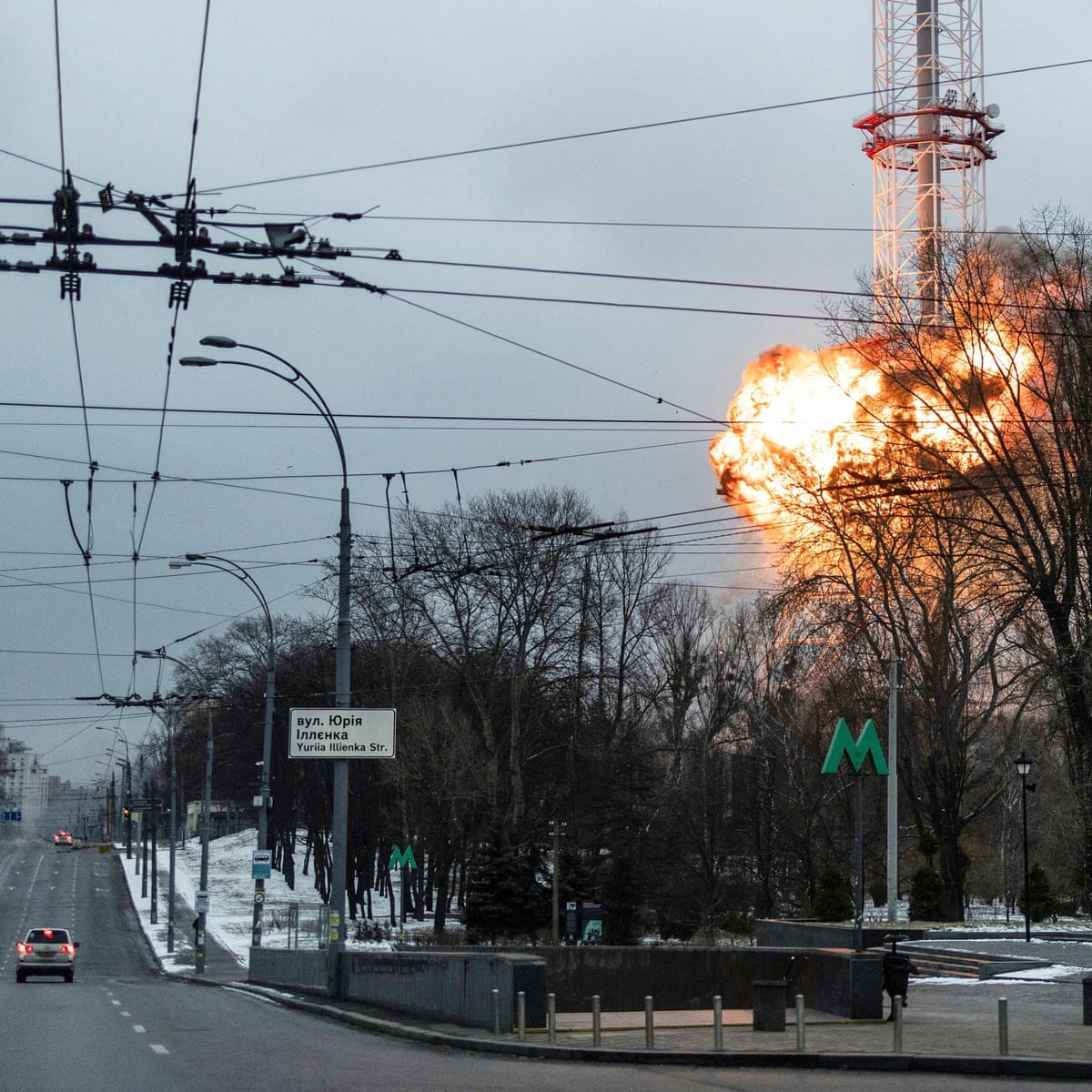 Russian Tanks Seen Being Ambushed On Outskirts Of Kyiv Ukraine Video World News The Guardian